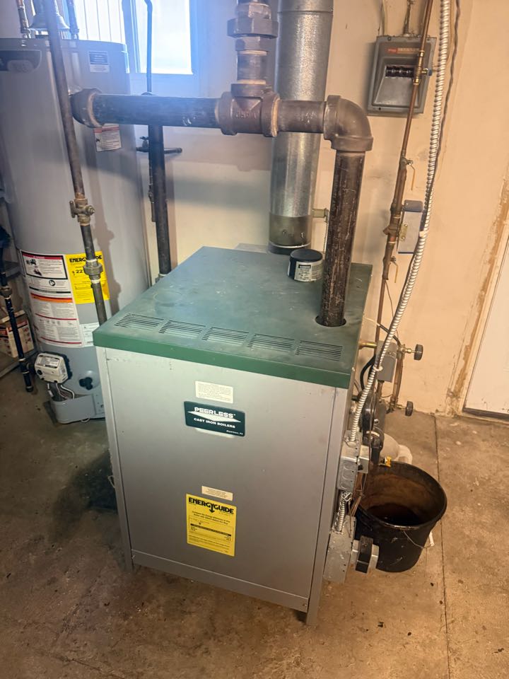 Routine service on gas fired hot water boiler.