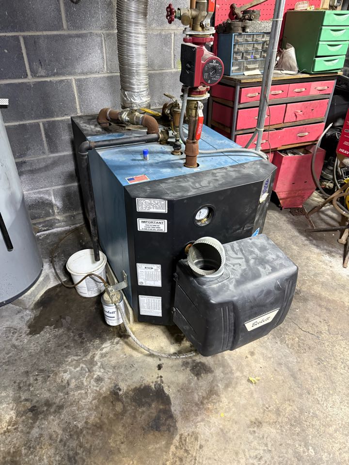 Routine service on oil fired hot water boiler.